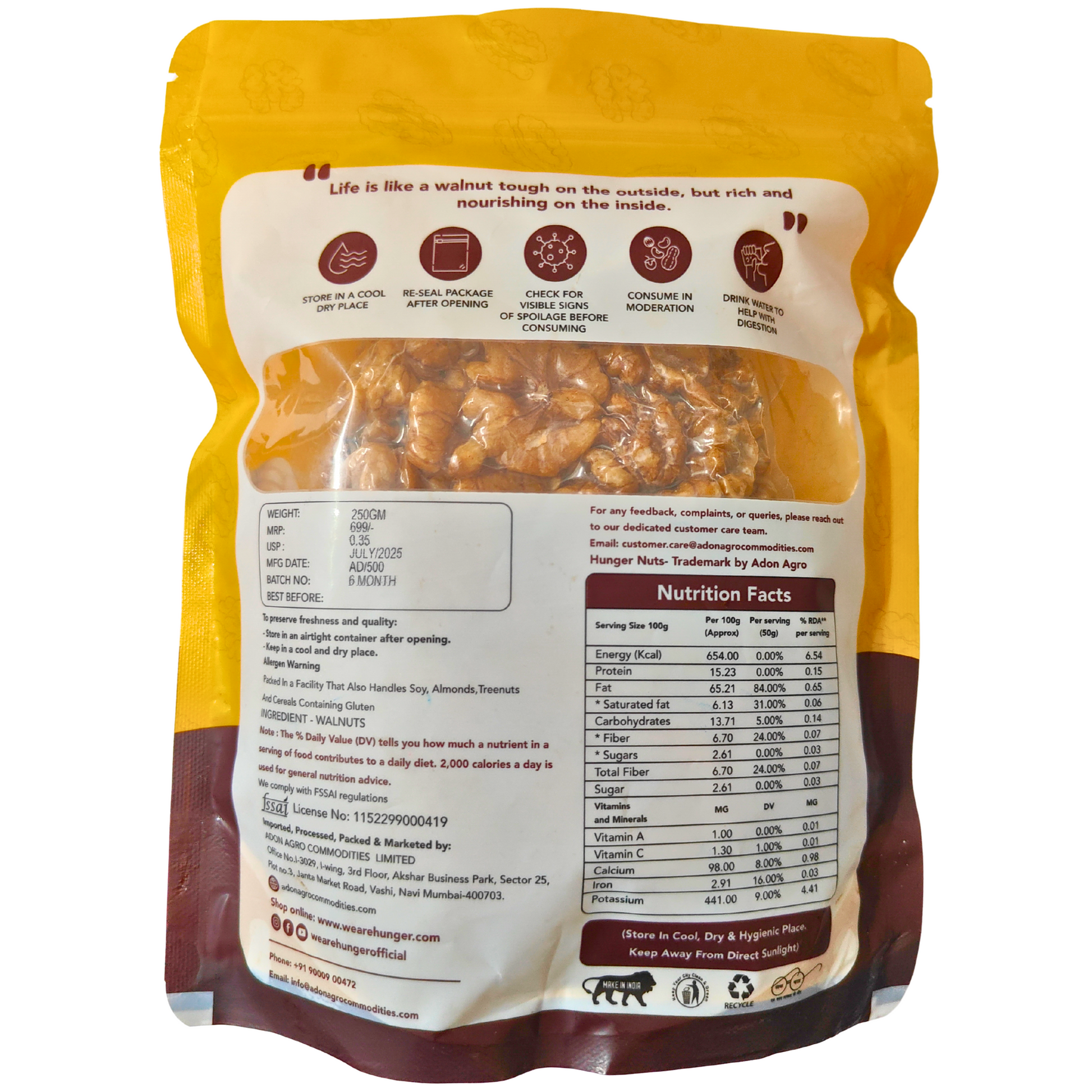 Discover the goodness of Hunger Nuts Walnut Kernels, a powerhouse of nutrition and taste. Handpicked, carefully processed, and hygienically packed, these walnut kernels are the perfect blend of crunch, flavor, and health benefits.